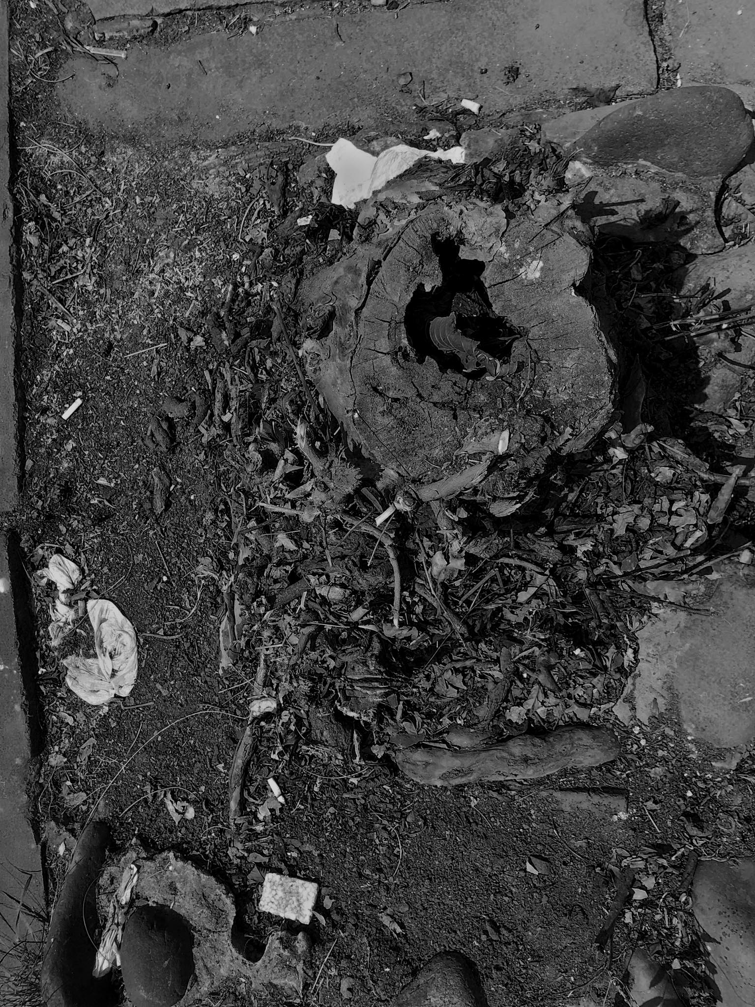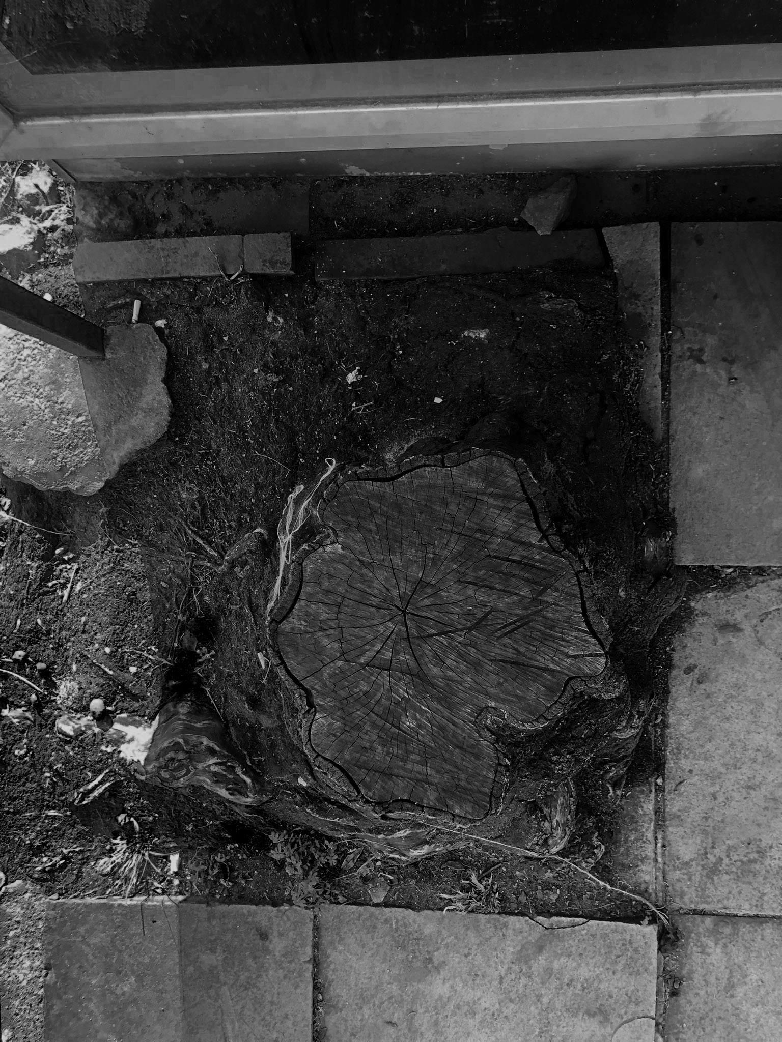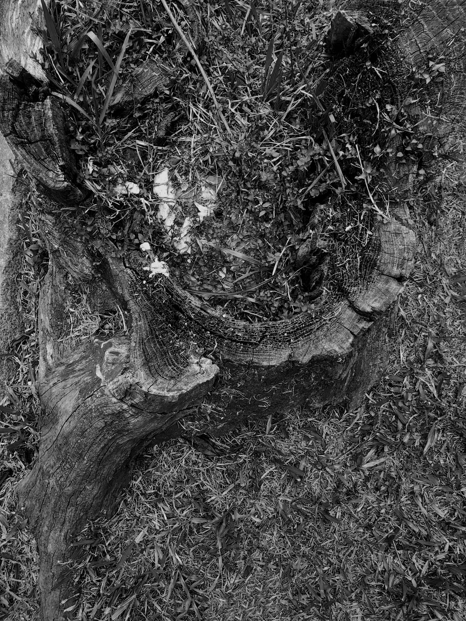O corpo esbarra em uma lacuna de ar na calçada. No subterrâneo, a conexão colapsou. As palavras “corpo”, “ar”, “conexão” e “colapso” mexem com Cristine, ocupam seu trabalho. Ela as carrega em caminhadas diárias pelas ruas de seu bairro, em Porto Alegre. Há tempo, Cristine vem procurando entender o que conecta um corpo a outro. Perguntou-me, um dia: “Onde vai parar a porção de ar que um corpo desloca quando nasce?” – “esse mesmo ar” – ela aproxima a mão fechada de meu rosto e começa a abrir os dedos, um a um – “é empurrado por cada dedo que se ergue. Meu movimento pressiona o teu corpo. estamos todos conectados”. Cristine costuma dizer que “tropeçou” numa primeira árvore cortada junto à raiz quando caminhava em uma praça. Logo deparou-se com mais uma, mais outra e ainda outra. Encontravam-se em todos os tipos de passeio público e todas foram radicalmente extirpadas. A metáfora do tropeço traduz o desconcerto de Cristine diante dessas árvores evacuadas violentamente do ar que nos conecta. “Nos bairros de classe média, cortam o pé e deixam o toco. Nos bairros abastados, removem inclusive as raízes, mas preservam os canteiros”. As imagens de catálogo r são fruto de um tropeço, de uma sucção indevida. Elas nos entregam o que a ordem natural não nos permitiria ver: Anéis internos dos troncos; emaranhados de raízes puxadas para a superfície; a sombra de um oco. Com que facilidade eliminamos a vida; com que indiferença convivemos com seus restos. Certos enfrentamentos só se tornam suportáveis quando mediados pela arte.