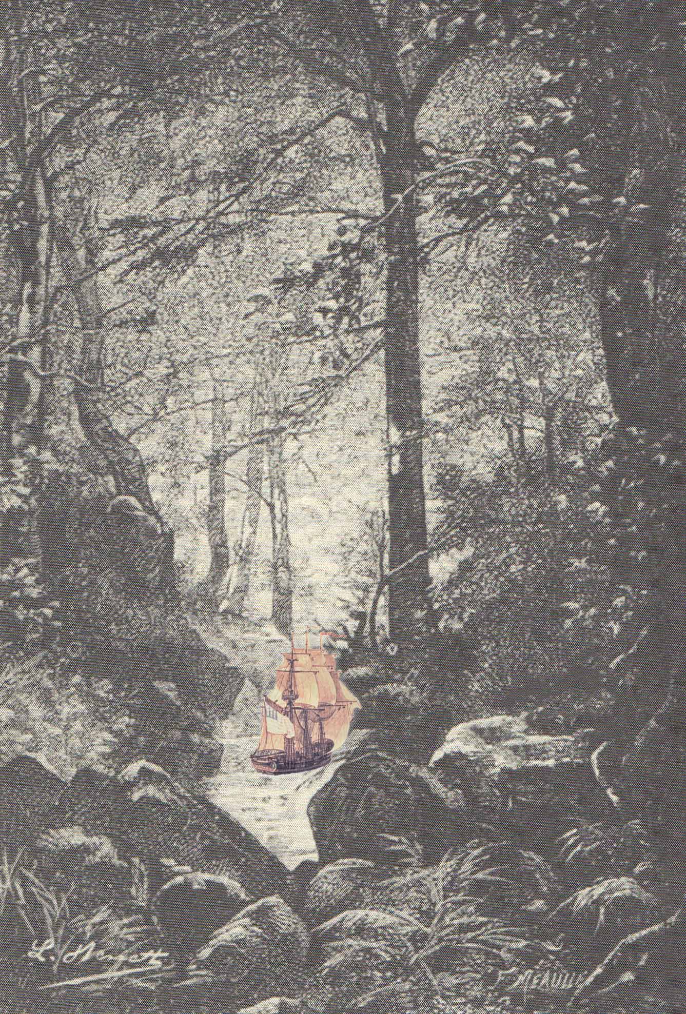 “O riacho inteiro desloca-se de um lado a outro como as gotas que o compõe. sua massa, obstruída por algum rochedo ou por um tronco de árvore atravessado no leito, escoa lateralmente e vai-se chocar contra uma margem. Empurrada pelo obstáculo, ela torna a saltar para a margem oposta, golpeia-a, e, de novo empurrada obliquamente, lança-se em sentido inverso”.